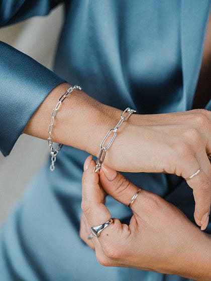 The copper alloy in sterling silver can cause it to ‘tarnish’, causing a black or brownish coating to form on your jewellery. This is easily removed using an Essential Sterling Silver Polishing Cloth and underneath the tarnish your silver will not be damaged. Chemicals such as cleaning products and chlorine can cause damage to silver, and so we recommend removing your jewellery before coming into contact with any chemicals. For more tips on cleaning and caring for your jewellery click here.